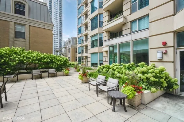Welcome to this gracious, light and airy, split two-bedrooms/two-bathroom floorplan at The Fordham. This luxury high rise is known for full-service amenities and exceptional service levels. The recently remodeled open kitchen seamlessly blends elegance with function. Calacatta-Venetian Gold Quartz countertops and a generously proportioned working island sweep across the space giving warmth and movement while natural light from surrounding windows bathes the space. Sleek stainless-steel appliances (Bosch dishwasher, GE refrigerator and oven) are integrated throughout lending a modern, polished edge that contrasts beautifully with the organic tones of the quartz. The open layout keeps sightlines unobstructed, allowing the kitchen to remain connected to the living space and beyond to grand cathedral architecture and north & east city views. The result is a space designed as much for gathering and conversation as it is for cooking. The primary suite offers an en-suite bathroom with a soaking tub, separate shower and marble surfaces. The second bedroom looks out to the balcony and is the perfect guest room or in-home office. Your private balcony is perfect for outdoor grilling, evening cocktails, morning coffee or just a respite from the city below. Beautifully maintained hard wood floors, abundant storage and in-unit laundry add to everyday convenience. The Fordham has 24-hour security, doorperson service, dry cleaning and a receiving room. Amenities to make your life more enjoyable include and outdoor garden and sundeck, wine cellar with private storage and lounge, a humidor room, indoor pool, fitness center, private theatre, spa room, hospitality room, dog run, bike room and more. Shop designer boutiques along the Magnificent Mile, dine at four-star restaurants, sample the exciting nightlife and take in the cultural venues you only find in a world-class city. A deeded parking space in the attached garage is INCLUDED in the price. Whether you are hosting guests or enjoying a quiet moment above the city, this home offers the perfect balance of vibrance and tranquility.