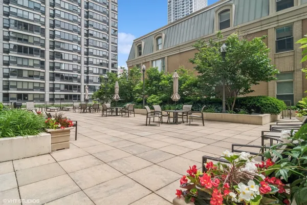 Welcome to this beautifully maintained northwest corner 2 bed, 2 bath home at The Fordham. This light-filled residence features a spacious living area with bay windows, an eat-in kitchen, and a private balcony offering city views. The primary suite includes a custom walk-in closet and a newly updated en-suite bath with a new glass shower enclosure, while the second bath has also been upgraded with a new glass enclosure. Additional features include a full laundry room, freshly painted interiors, and meticulously maintained appliances and mechanicals. The Fordham is a highly sought-after full-service luxury building with strong financials and no upcoming or current special assessments. Residents enjoy newly renovated amenities including a club room, outdoor deck, indoor pool and jacuzzi, home theater, wine room with storage, humidor, spa treatment room, sauna, and fully equipped fitness center. One parking space included. Unbeatable location just steps from Michigan Avenue, shopping, dining, and the lakefront. Schedule your private showing today and experience all The Fordham has to offer!